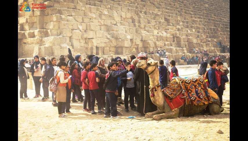 أسفل سفح الهرم وقفت تلك الحيوانات تنتظر الفرج، اضطر أصحابها لتخفيض قيمة الرحلة عسى أن تجد زائرًا، التقت عدسات الزميلة آلاء حسين تلك الصورة، وجاءت الصورة أثناء رحلات الـ"إيجيبشيان جيوجرافيك" الاستكشافية، والتي انطلقت في الخامس من فبراير عام 2018، حيث التقي أكثر من 500 من تلاميذ مدارس
