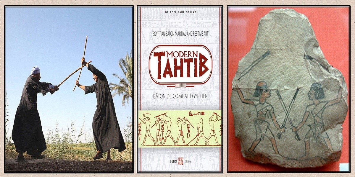 Images and inscriptions of tahtib were found on significant Egyptian monuments and on the walls of pyramids. Also, walls of temples carry the images of trainers while encouraging the trainees, and teaching them the disciplines of tahtib. Furthermore, images of tahtib, with archery and wrestling, were put on the panel of physical activities in ancient Egypt. Due to its importance, it had been described in the pyramids of the kings of the old empire.
